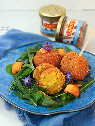 Aggiungete il tonno, sbriciolandolo grossolanamente, tritate il prezzemolo finemente e unitelo al composto insieme all’amido. Amalgamate il tutto, regolando di sale e pepe e formate delle polpettine più o meno della grandezza di una noce.